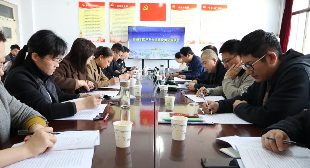 德州市工信局科技科、市公共就业和人才服务中心人力资源流动科负责人,我校教务处、学科处负责人和部分二级学院院长、分管教学副院长、相关专业系主任等参加会议。