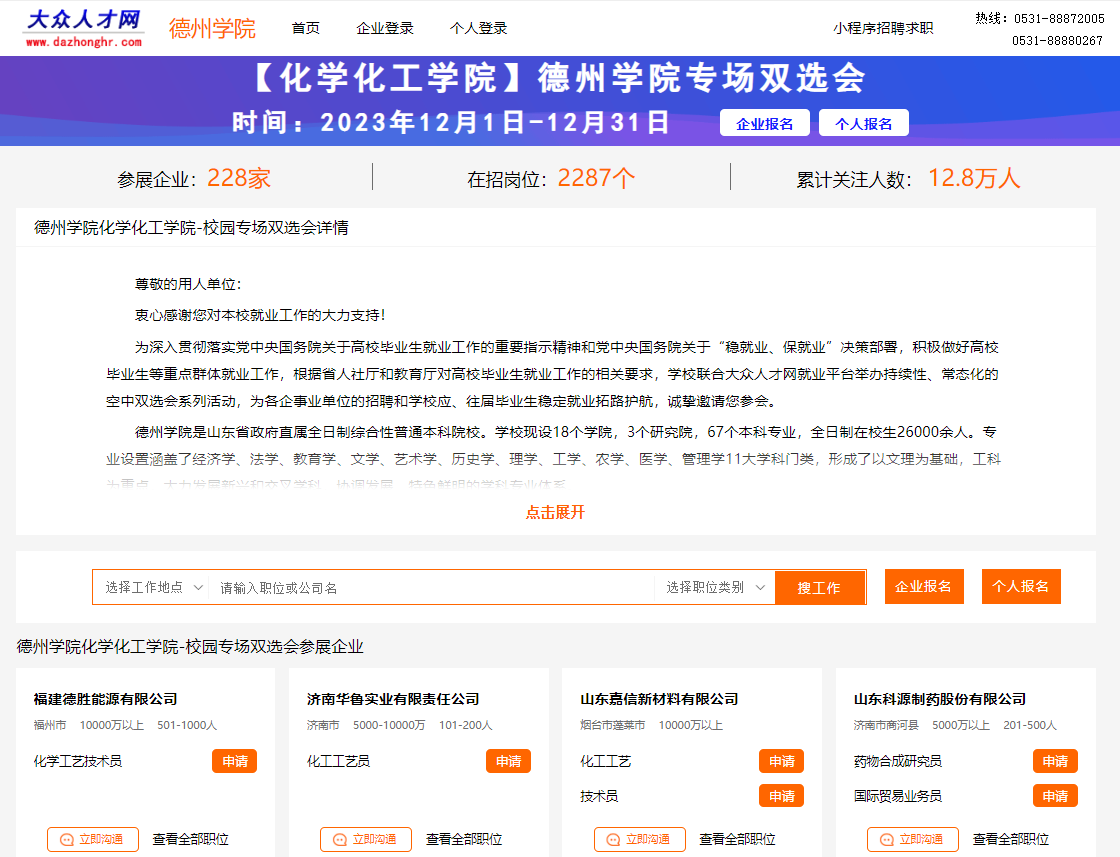 本场招聘会为德州学院beat365英国官方网站专场招聘会。