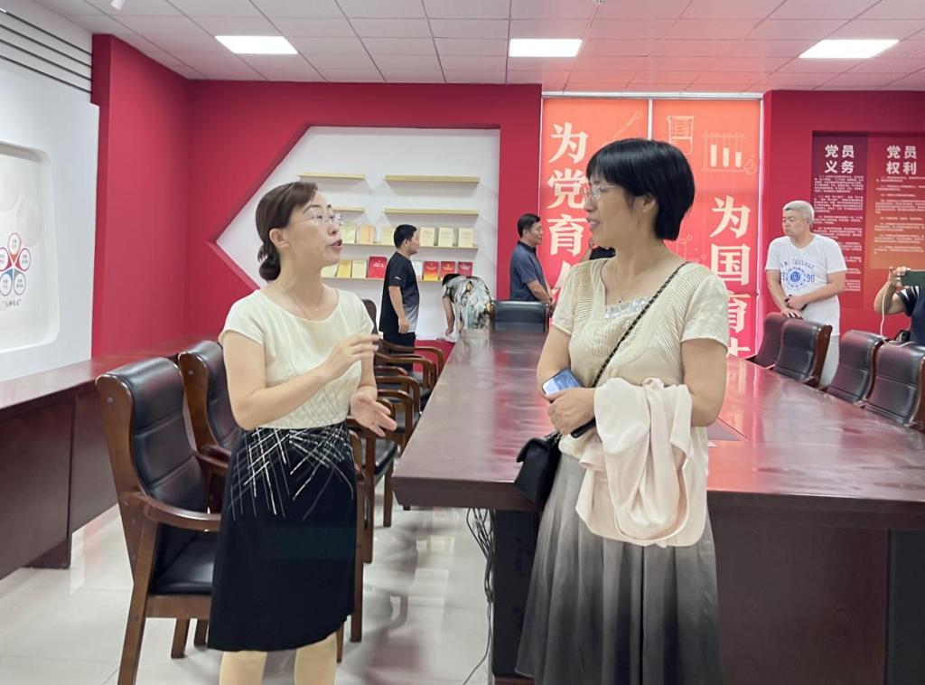 一行人参观beat365英国官方网站第一教师党支部党员活动室与“初心展厅”,对全国党建工作样板支部建设情况及深入开展学习贯彻习近平新时代中国特色社会主义思想主题教育工作开展情况进行了座谈交流。