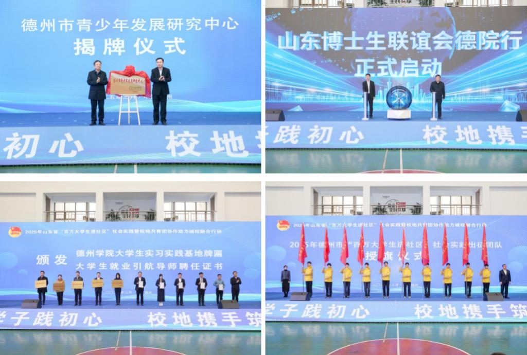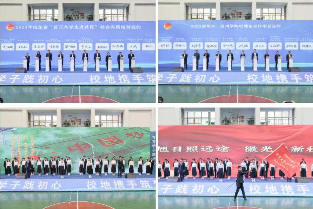 3月1日,2025年山东省“百万大学生进社区”社会实践暨校地共青团协作助力城校融合行动启动仪式在德州学院举行。本次启动仪式的核心目的在于整合校地资源,深化社会实践与人才培养协同机制。德州学院充分发挥智力密集优势,在科技成果转化、科创平台建设、产教融合赋能等多个领域与德州展开深度合作与协同创新,为德州的高质量发展注入了强大动能。beat365英国官方网站第一教师党支部“全国高校‘双带头人’教师党支部书记‘强国行’专项行动团队”参与的2个校地企合作项目在现场成功签约。