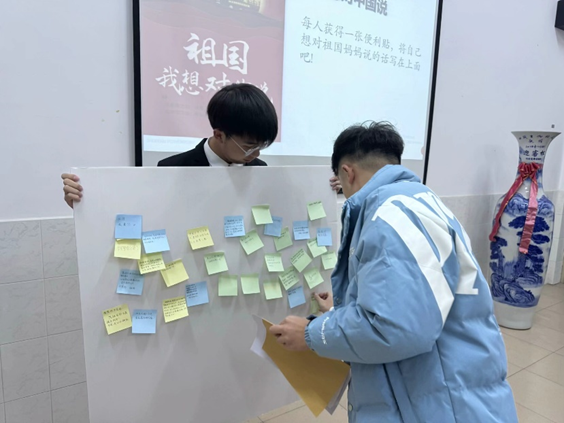 为动员引领广大团员争当“五个模范”、做到“五个带头”,在强国建设、民族复兴伟业中勇当先锋队、突击队,为实现高质量发展持续注入青春力量,新葡萄官网amg院团委于2024年10月25日下午在新葡萄官网amg西校区五教1005召开了“青春为中国式现代化挺膺担当”的主题团会。活动由团学部干事杨吉珍主持,参会人员有各班团务负责人、入党积极分子及部分学生会成员。 会议伊始,主持人杨吉珍介绍会议议程。此次主题团会活动旨在深入学习贯彻党的二十届三中全会精神,指导基层团组织紧扣党的中心任务,围绕党和国家重大战略,引领广大团员挺膺担当。会议的第一项,全体学生起立奏唱国歌。随后主持人杨吉珍带领大家学习了习近平总书记在湖北考察时重要讲话精神,习近平总书记给中国国际大学生创新大赛参赛学生代表的回信精神,学习习近平总书记关于高质量充分就业的重要讲话精神。 在个人心得分享环节,来自动科职32401郑婷婷围绕着“习近平总书记在湖北考察时重要讲话精神”展开分享,她指出要在习近平总书记重要讲话中学精神、悟思想、践行动,以坚定的理想信念引领青年思想、服务青年成长、凝聚青年力量,以“请党放心,强国有我”的青春誓言。渔业QZ241方泽平则围绕着“习近平总书记给中国国际大学生创新大赛参赛学生代表的回信精神”展开分享,他强调我们团员青年要深刻领悟习近平总书记的回信精神,以“挑战杯”“互联网+”竞赛为载体,积极参加双创活动,进一步强化创新意识、投身创新实践、勇担时代使命。 小组活动环节则围绕“祖国我想对你说”展开。每人得到一张便利贴,将自己想对祖国妈妈说的话写在上面,随后将写好的便签贴在展板上,原本单调的展板上逐渐被便签填满。 本次主题团日活动的成功举办,不仅丰富了团员们的课余生活,更加强了团支部的凝聚力和向心力,使团员们在活动中受到了教育、得到了锻炼。相信在今后的学习和工作中,团员们将以更加饱满的热情和昂扬的斗志,积极投身到各项事业中,展现新时代团员青年的风采。 (审核 孙恺|编辑 邱子晨)