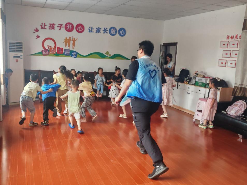 下午的活动更是精彩纷呈。一二三木头人的游戏让孩子们玩兴大发,队员们也纷纷加入其中,与孩子们一起欢笑、一起奔跑。输了便表演节目的游戏机制使活动更加有趣,也让孩子们在游戏中收获了更多的快乐与成长。为确保游戏进行时孩子们的安全,其他队员自发分布在活动室四周,时刻关注着孩子们的动态,避免他们因奔跑速度过快而发生意外。