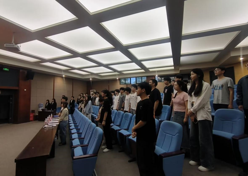 主持人为团学部干事刘跃,参会人员为院团委王婷,各班团务负责人、入党积极分子及部分学生会成员。