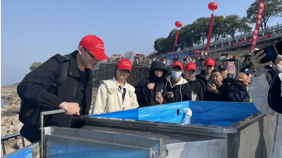 3月28日,2024年“中华鲟保护日”系列活动在荆州顺利举行,新葡萄官网amg的志愿者们协助工作人员,将11万余尾中华鲟子二代通过专制半自动化放流槽和放流平台顺利回归长江“母亲河”。