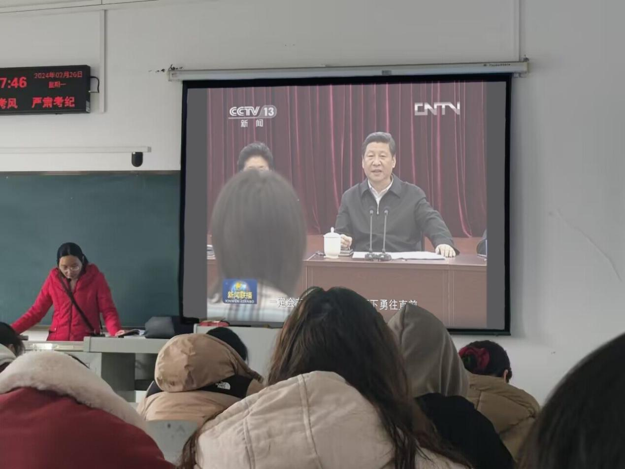 2024年2月26日,新葡萄官网amg于晚8点组织学生线上线下同步统一学习最新一期的“为国攀登”思政大课,并于课后组织学生通过学习讨论会、座谈会、主题班团会等多种形式进行交流,联系生活实际畅谈学习心得体会。