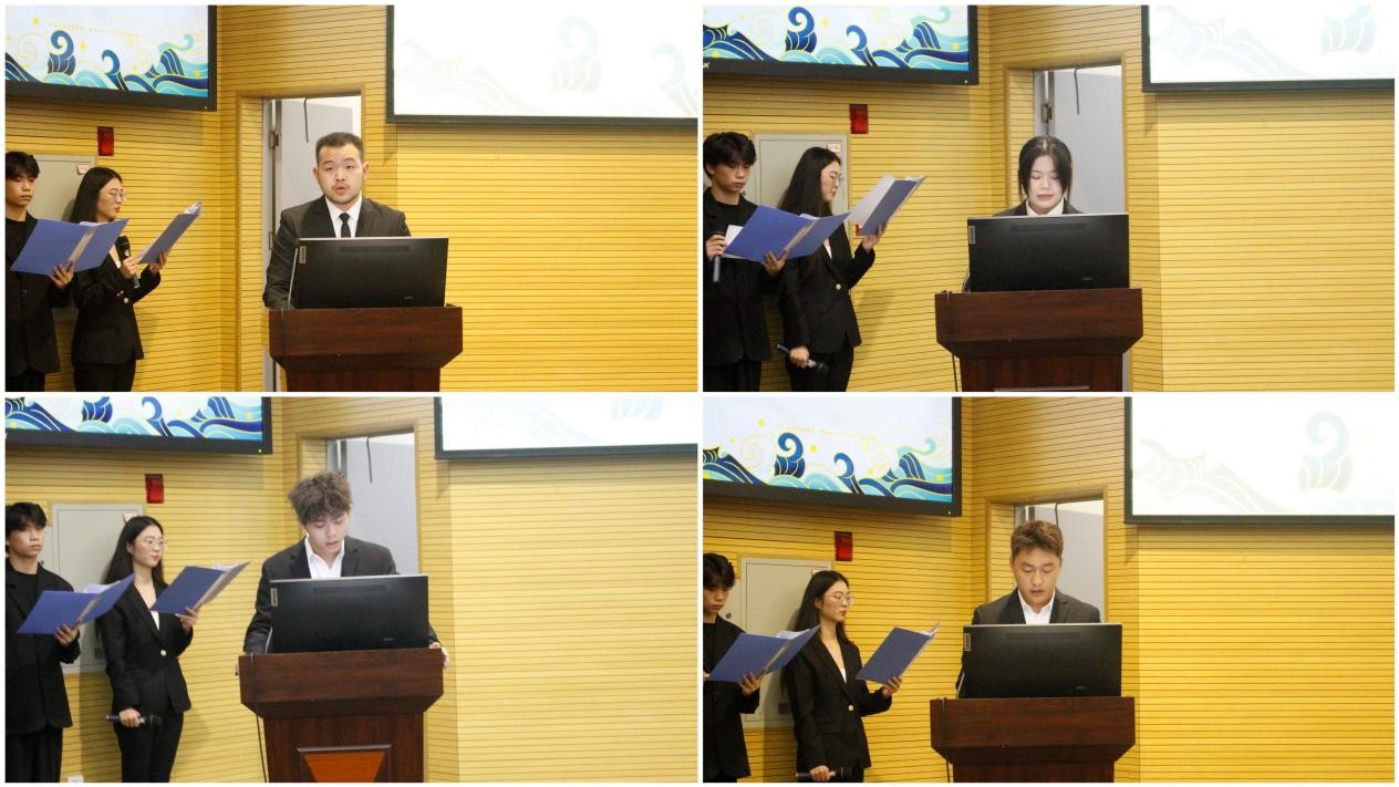 主席团代表、部长代表以及新部员代表进行发言。第二十届主席团代表任子诺学长在发言中希望新一届成员要时刻把服务同学放在首位,要有为他人和社会奉献的决心;要懂得与他人合作,善于倾听,发挥自己的优势;要有拼搏精神要敢于挑战自我,不断突破走向美好未来。谢佳利学姐在发言中指出,学生会肩负着为全院同学服务的重任,要用心做好每项工作,为同学们努力创造一个良好的学习和生活环境。部长代表谭丽杨通过对前期工作的总结和新一期的规划,他说学生会是大家共同的家园,只有大家的支持和参与,才能更好的服务于同学。部员代表刘跃则代表全体同学表态并提出承诺:互帮互助,团结一致,才能更高效地完成工作,时刻提醒自己注重礼貌,不带优越感,以认真的态度和真诚的心服务师生,一分部署,九分落实以满腔热情对待每一份工作,不负期望,共赴院会发展。