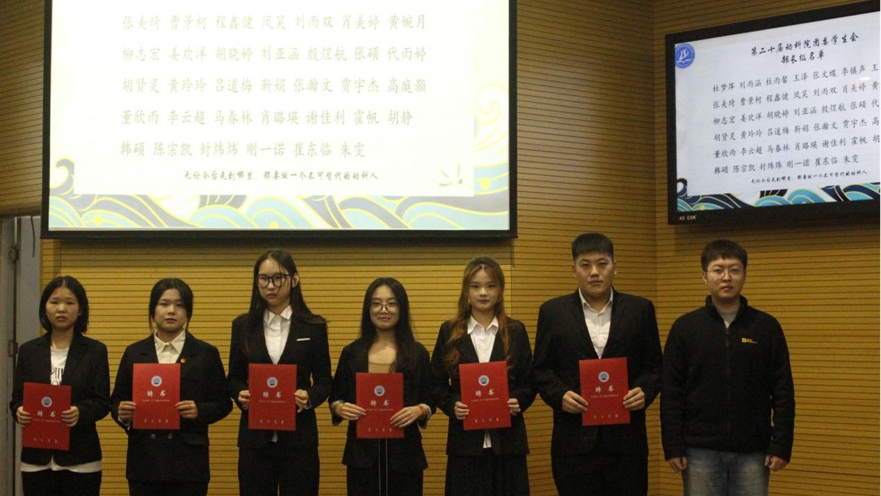 为了增强新一届学生会成员对学生会大家庭的认同感,提高团队凝聚力,更好地展现出学生会积极向上的精神面貌,新葡萄官网amg于10月14日晚七点在农科大楼1056举办了第二十一届团委学生会成立大会,本次参会成员有本科生辅导员王海洋、杨湘虹、宋宇航,团委分管老师王婷,第二十届团委学生会主席团成员以及第二十一届团委学生会全体成员。会议彭洋和徐继婷主持。
