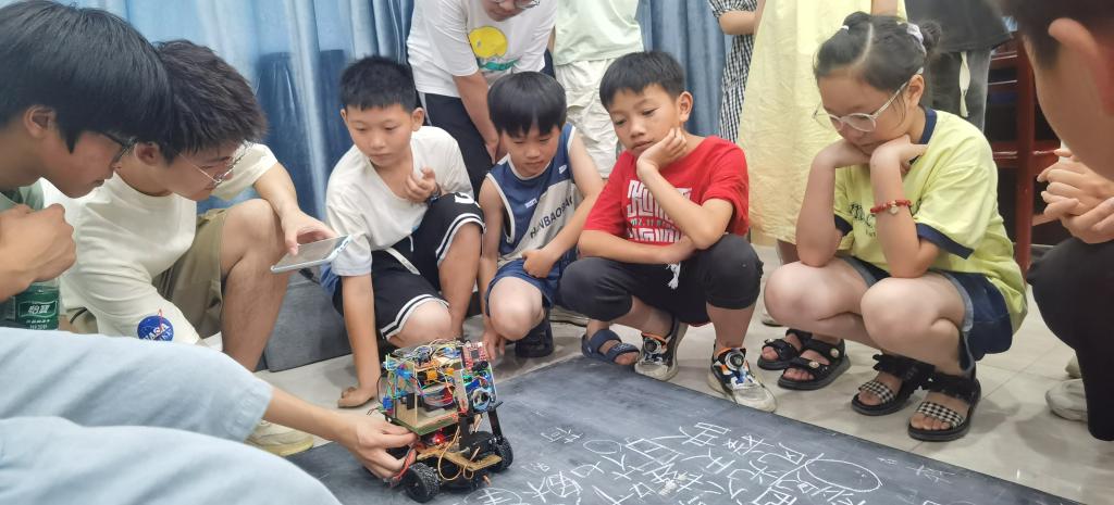 新葡萄官网amg电子信息学院为孩子们进行“科技悦启蒙,留守不孤单”实践活动,活动分为显微镜的使用与观察、“火山”实验、无线遥控智能车的讲解、亮灯电路板四个小实验现场演示,让孩子们现场操作来感受科技的魅力,激发孩子们科技探索精神。