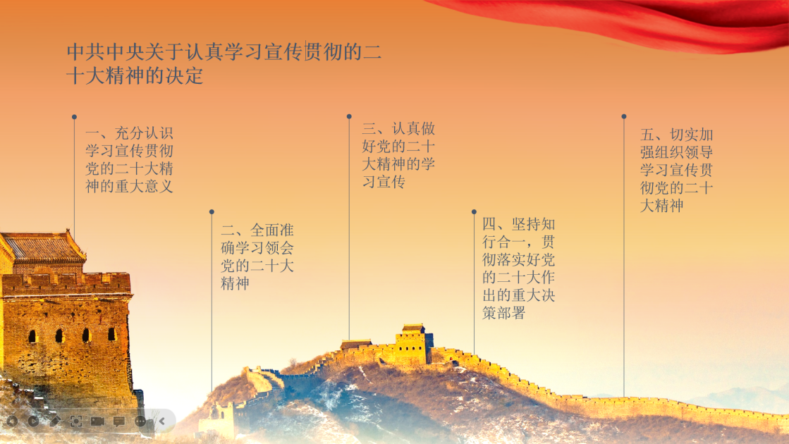 活动由三部分组成,第一部分主要学习习近平总书记在中国共产党第二十届全国人民代表大会上的报告,高举社会主义现代化伟大旗帜,全面贯彻新时代中国特色社会主义思想,弘扬伟大建党精神,自信自强、守正创新、踔厉奋斗,勇毅前行,为全面建设社会主义现代化国家,全面实现中华民族伟大复兴而奋斗。