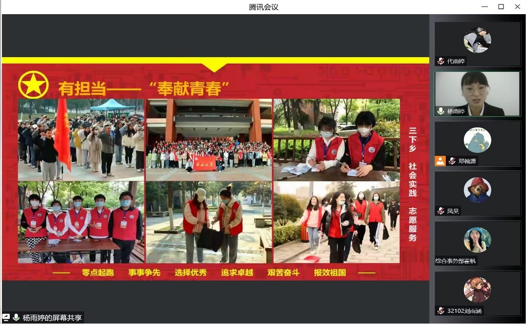 (通讯员:吕道梅)为加深同学们对青马组织的了解,调动同学们加入青马班的积极性,提高自身能力,积极向党组织靠拢,新葡萄官网amg于10月9日早上10点开展了线上青马宣讲活动,参加此次活动的有二十届动科院学生会部长级成员及青马小组成员。本次宣讲会由邓翰源主持。