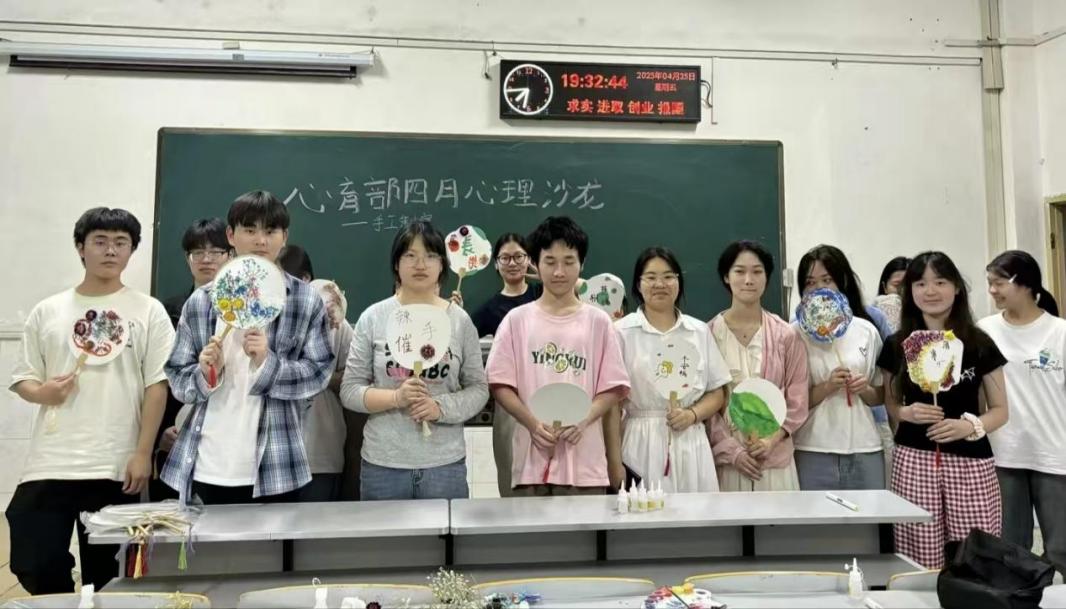 2025年4月25日18:30,一场充满创意与温情的心理沙龙DIY制作扇子活动在5教302教室圆满举行。在当今快节奏的学习生活中,学生们面临着各种压力,关注心理健康显得尤为重要。本次活动旨在通过艺术创作的形式,为同学们搭建一个释放压力、表达内心、探索自我的平台,让大家在动手实践中感受艺术疗愈的独特魅力,促进心理健康发展。 活动伊始,主持人热情地向大家介绍了本次心理沙龙的主题与目的,并详细讲解了DIY扇子的制作流程和技巧。在工作人员分发空白扇子、干花、胶水等制作材料后,同学们纷纷发挥自己的想象力和创造力,将内心的情感、美好的愿景以及对生活的热爱,展现在扇面上。 现场氛围轻松愉悦,欢声笑语不断。大家时而专注地用胶水粘花,时而与身边的伙伴交流分享创作思路和灵感。有的同学用绚丽多彩的花制作出春日景象,表现对美好生活的向往;有的则通过简洁的花和淡雅的色彩,表达内心的宁静与平和。在艺术创作的过程中,大家逐渐忘却了生活和学习中的压力与烦恼,沉浸在自我表达和心灵探索的愉悦之中。 经过一个多小时的精心创作,一把把独具个性、充满艺术气息的扇子呈现在大家眼前。每一把扇子都是同学们内心世界的独特展现,承载着他们的情感与故事。 本次心理沙龙DIY制作扇子活动的成功举办,让同学们在艺术创作中释放了压力、舒缓了情绪,同时也增进了彼此之间的交流与互动,营造了积极健康的心理氛围。未来,新葡萄官网amg心育部计划开展包括心理知识小科普、户外心理拓展等多种形式的心理活动为大家提供更多关注心理健康、促进心灵成长的平台,助力每一位参与者在心灵之旅中遇见更好的自己。 (审核|孙恺 编辑|蔡鸿荟 钟艳菲)