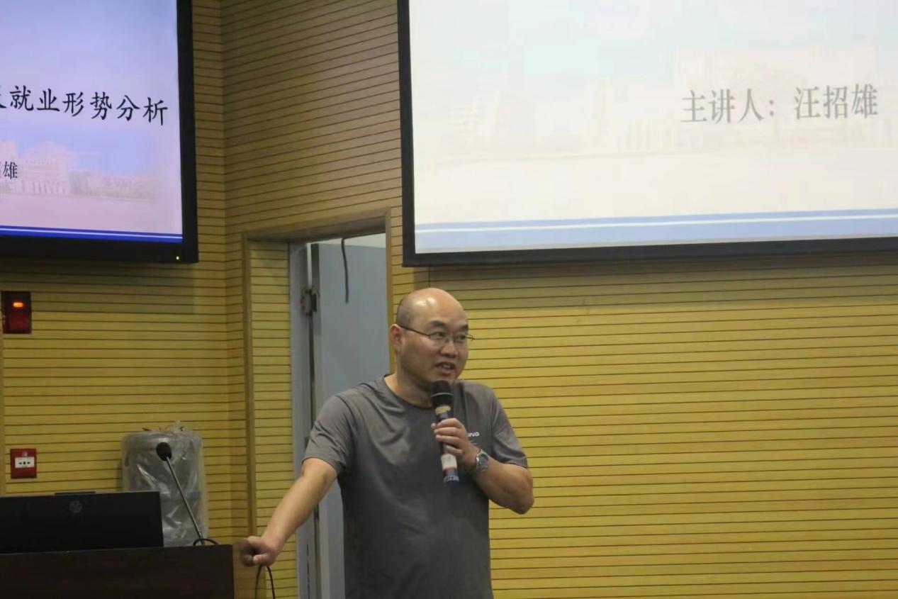 讲座伊始,汪招雄教授从当下严峻的就业形势出发,围绕就业的“时”与“势”开展毕业生指导讲座。他指出,在当下时代背景中,同学们应稳扎稳打,注重自身实力的提升,把握就业新形势。在注重专业知识沉淀积累的同时,还需提升个人综合素质及一定的求职能力,清晰的认识到目前市场环境给毕业生带来的冲击,并做好自己的职业规划,充分利用校内资源,积极面对挑战。