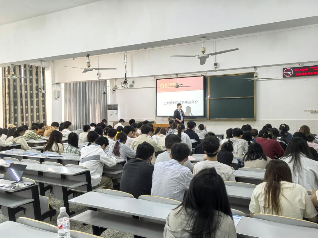 在接下来的板块介绍环节中,正大集团湖北区的代表分别从饲料板块、养殖板块和水产板块三个方面,详细讲解了各板块的核心业务、技术优势以及人才需求。通过生动的案例和具体的岗位介绍,同学们对正大集团的多元化业务有了更全面的了解,同时也对自身的职业发展方向有了更明确的规划。