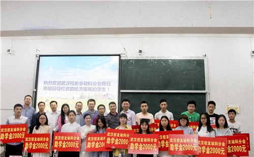 5月3日,新葡萄官网amg武汉校友会动科分会7位校友代表回到母校颁发励志助学金,15名品学兼优的动科学生获得奖励。