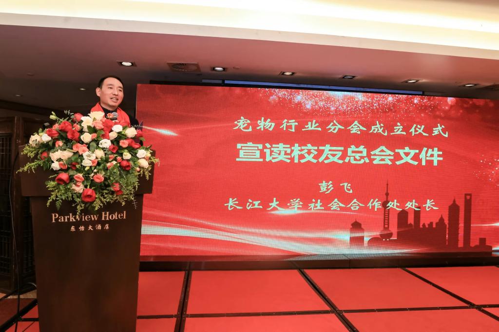 校友总会秘书长彭飞宣读了《新葡萄官网amg校友总会关于同意成立新葡萄官网amg校友会宠物行业分会的批复》文件,同意由张启龙等担任第一届领导成员。