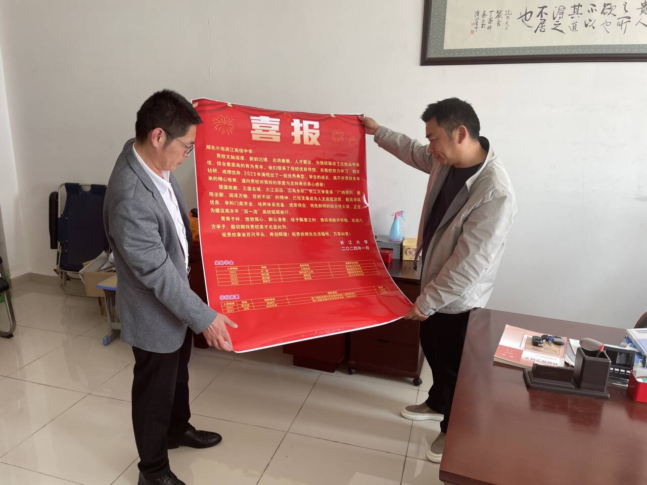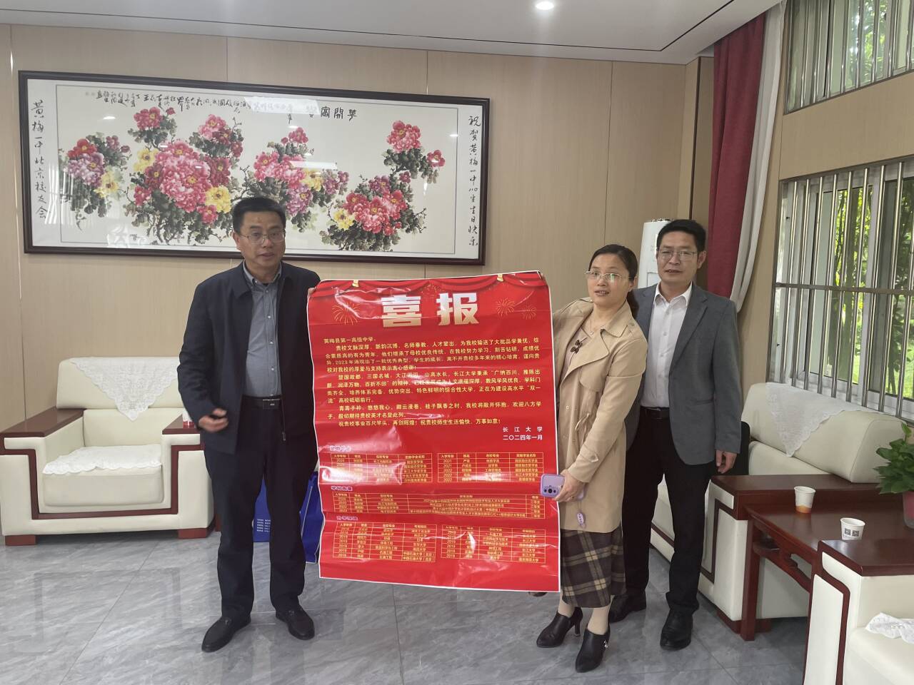 2024年4月9日至11日,新葡萄官网amg开展2024年招生工作宣传活动,在学院党委副书记孙恺的带领下,学院老师前往黄梅县对7所中学进行走访座谈,并送上喜报。