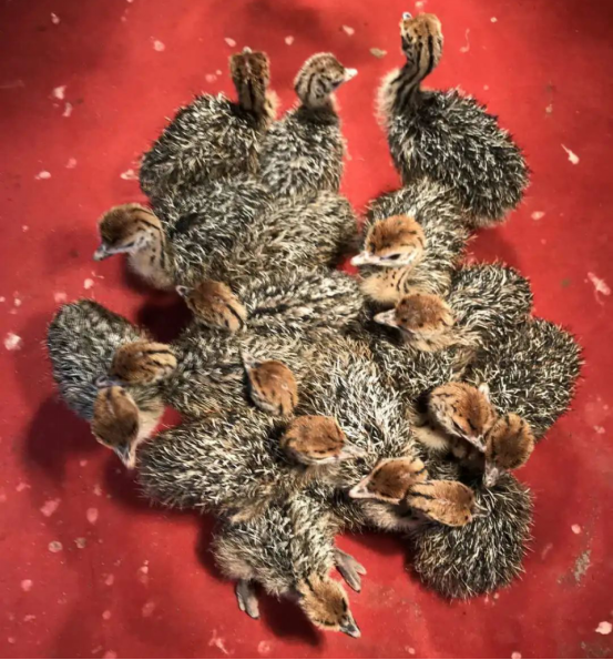 出雏,刚出壳的雏鸟要做好三件事:一是:脐带用碘酒消毒;。二是:留做后备鸟的雏鸟要编号雏鸟标号,父母号;三是:雏鸟称重。然后将雏鸟放入机器底部的出雏箱内。箱底垫需有防滑垫。(预防因箱底滑,雏鸟双腿劈叉。箱内雏鸟不易过多,防止雏鸟互相挤压,造成伤亡。雏鸟在出雏机里可呆24小时,待羽毛风干后(或近似干燥的雏鸟转入育雏室。