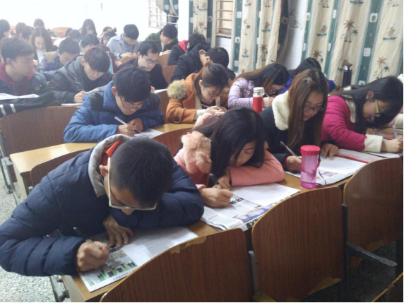 为了让面试者有良好面试环境并以最优的状态应战,负责人陈富杰作出了明确的分工并做好布置会场等工作,面试开始之前刘育琴做了精彩的企业文化解说并播放企业宣传片,紧接着第一届通威班优秀学员陈富杰为大家解说了通威股份的发展历史和发展理念,接下来第二届通威班优秀学员钟天朗结合自身经历的演讲让与会人员更深一步的了解了通威班的深刻意义,接下来的笔试部分正式开始,学员们自信答题而且从容不迫。