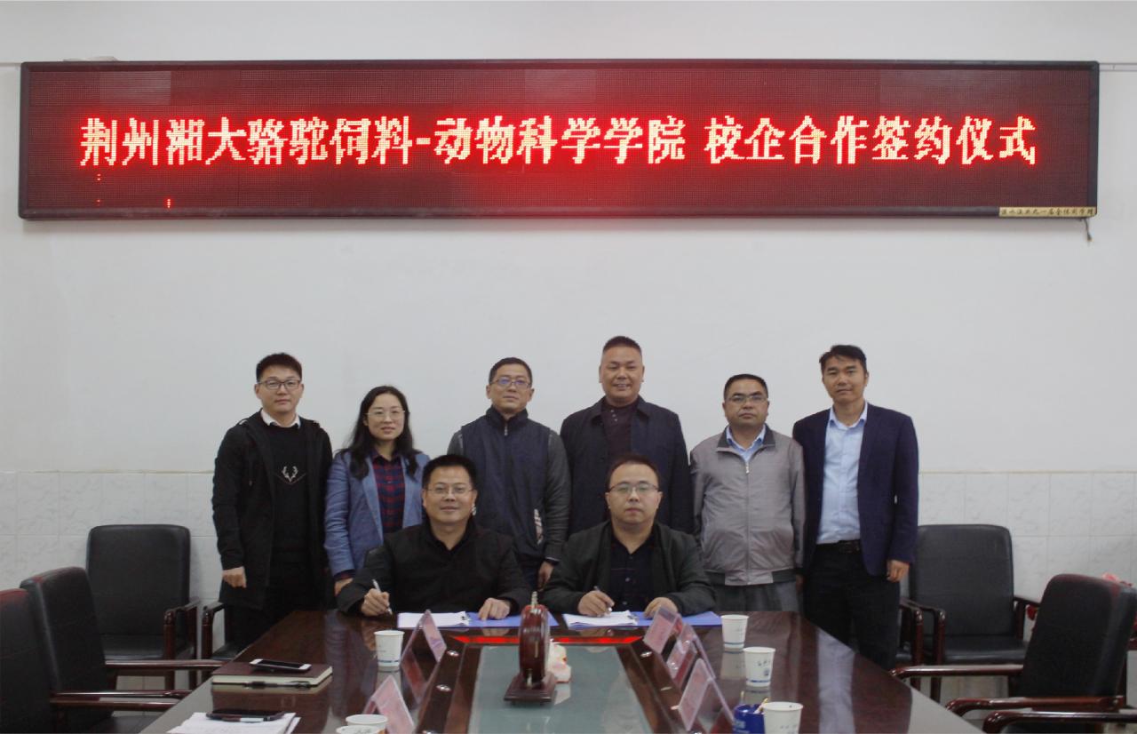 最后,杨烨副院长和朱虹总经理分别代表新葡萄官网amg动物科学学院、荆州湘大骆驼饲料有限公司签署合作协议,正式启动双方的合作。