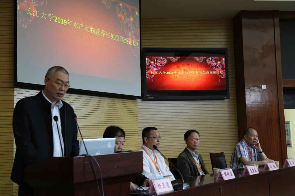 2019年5月9-11日由新葡萄官网amg动物科学学院承办的“新葡萄官网amg2019年水产动物营养与免疫高级论坛”在农科大楼举行。中国工程院院士麦康森、中国科学院水生生物研究所党委书记解绶启研究员、青岛农业大学海洋科学与工程学院院长聂品研究员、华中农业大学水产学院院长张永安教授、上海海洋大学邹钧教授、中国海洋大学张文兵教授以及来自中国科学院水生生物研究所、中国海洋大学、上海海洋大学、华中农业大学、广东海洋大学、华东师范大学、汕头大学、中山大学、中国水产科学研究院长江水产研究所等16所高校和科研院所的专家和学者前来参会。动科院全体领导、部分教师、本科生及全体研究生参加了会议。水产前沿记者全程进行了跟踪报道。