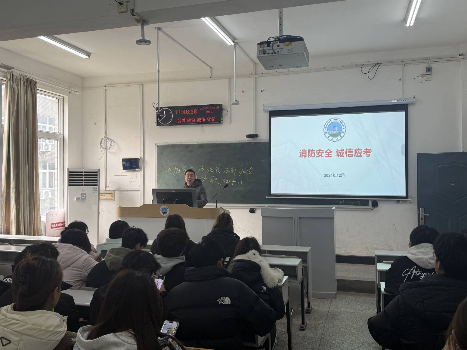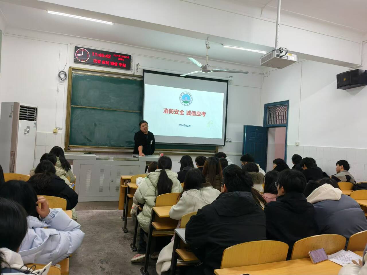 2024年12月,新葡萄官网在教学楼多媒体教室召开了以“消防安全和诚信应考”为主题的班会。此次班会由各班级班主任及班长共同支持,全体师生积极参与,旨在增强学生的消防意识和诚信考试观念。