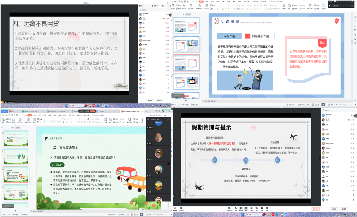 为全面筑牢假期安全防线,切实保障师生生命财产安全,4月26日,新葡萄官网amg创新安全教育形式,组织全院各班级召开“平安五一·护航青春”主题安全教育班会。通过“理论+案例”教育模式,将安全知识具象化、场景化,着力提升学生安全防范能力。