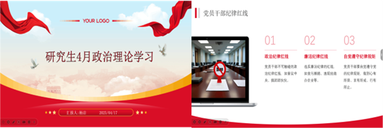 为深入学习贯彻习近平新时代中国特色社会主义思想,进一步增强“四个意识”,坚定“四个自信”,做到“两个维护”,提升我校研究生政治理论素养,深刻认识和准确把握党的二十大重大主题、重大理论观点、重大战略思想。新葡萄官网amg全体研究生于2025年4月17日—4月29日在各班举行了4月政治理论学习活动,本次会议以班级班会组织学习、讨论为主,利用学生业余时间自学等形式为辅,线上、线下学习相结合,使理论学习取得良好的效果。 本次政治理论学习主要内容如下: 1.习近平总书记历次考察湖北重要讲话精神 2.《求是》杂志发表习近平总书记重要文章《朝着建成科技强国的宏伟目标奋勇前进》 3.《习近平关于加强党的作风建设论述摘编》读本 4.《中共中央八项规定》及《中央八项规定实施细则》5.党员干部请注意:这80条红线千万别碰! 本次政治理论学习圆满结束。同学们积极参与学习,分享了各自的学习心得,促进了政治理论思想与实践上的结合。通过本次学习,同学们充分发挥思想政治理论的引领作用,创新学习形式、丰富实践载体,推动政治理论学习与科研实践、社会服务紧密结合,切实增强学习实效,实现思想提升与行动落实的有机统一。 (审核:孙恺|编辑:史博敏 杨湘虹)