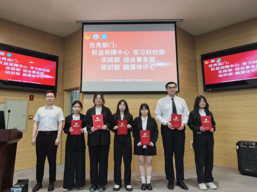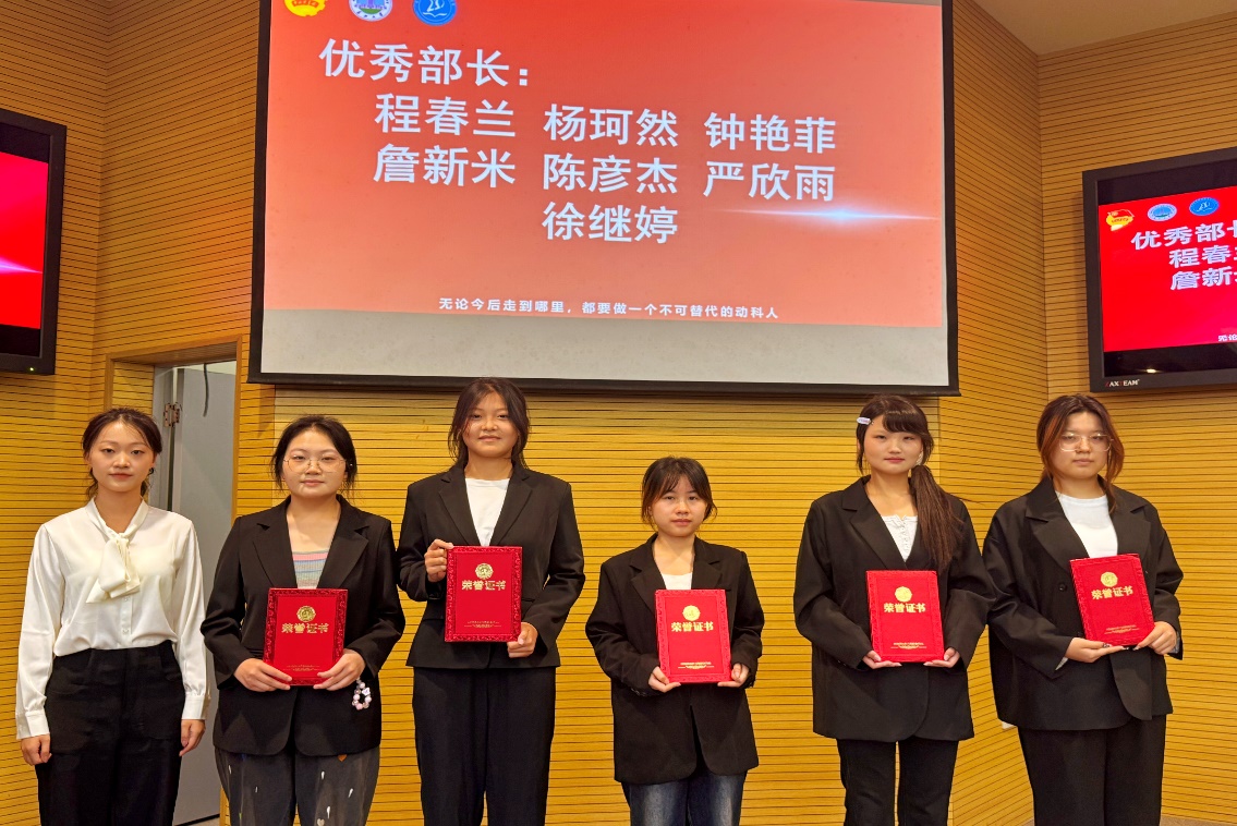 2025年6月19日,新葡萄官网amg第二十二届团委学生会总结大会在农科大楼1056顺利举行。学院党委副书记孙恺老师、学院团委书记宋宇航老师、主席团成员及全体团委学生会成员齐聚一堂,共同回顾过往、展望未来,为第二十二届团委学生会工作画上圆满句号。 大会在激昂的国歌声中正式拉开帷幕,各部门依次进行工作汇报。学习科创部聚焦学术氛围营造,通过多样活动为学子搭建学习交流平台;心育部紧扣心理健康服务,助力同学应对节奏挑战、疏解情绪压力;实践部以实践活动为桥梁,促进理论与实操融合,提升学生动手能力;权益保障中心坚守权益、维护初心,从宿舍安全到公平环境,为同学排忧解难。各部门述职全面且细致,展现出学生会“服务同学、锻炼自我”的工作宗旨,也让大家明晰过去一年的付出与成果。 述职结束后,进入颁奖环节。经严格评选,心育部、团学部、文体部获评本年度“标兵部门”荣誉称号,权益保障中心等多个部门荣获“优秀部门”荣誉称号;栾锡琨4名同学等获“标兵部长”荣誉,程春兰等7名同学被评为“优秀部长”荣誉;曾秋琪等9名同学同学荣获“标兵部员”荣誉,龚雨娇等9名同学同学荣获“优秀部员”荣誉。学院老师为获奖个人与集体颁奖,肯定他们的担当作为,鼓励全体成员以榜样为镜,砥砺前行。 随后,不同身份的学生干部代表登台分享感悟。部员代表谢方哲讲述自己在学生会从萌新到成长的蜕变,感谢团队给予的锻炼机会;部长级代表栾锡琨回顾部门管理与协作历程,强调责任与传承;主席团代表蔡晓英则从全局视角,总结工作成果、剖析不足,展望未来发展方向,她提到:“要将学生会的服务宗旨落实到每一项任务中,乘风破浪,开拓创新,用汗水铸就荣耀,用青春编织梦想”。真挚的发言传递出学生会成员对这份工作的热忱,也凝聚起继续服务同学、助力学院发展的共识。 最后,宋宇航老师进行总结讲话。肯定学生会过去一年在学风建设、活动组织、权益维护等方面的努力,强调学生会作为学院联系学生的桥梁纽带,要继续秉持初心、创新工作方法,在服务中提升自我、树立榜样标杆。同时鼓励同学们以总结大会为新起点,团结协作、勇担使命,为新葡萄官网amg的发展注入青春动能。 大会在热烈的掌声中落下帷幕。此次总结大会,既是对过去工作的系统梳理,也是新征程的动员号角。未来,新葡萄官网amg团委学生会将继续携手同行,以更饱满的热情、更务实的行动,书写服务同学、助力学院发展的新篇章,让青春在奋斗中绽放绚丽光彩。 (审核|孙恺 编辑|黎夏萱 刘佳慧 宋宇航)