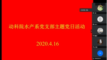 为深入学习贯彻习近平总书记关于疫情防控工作的重要讲话和指示精神,落实学校2020年工作会议精神,4月16日,在疫情防控的特殊时期,新葡萄官网amg水产系教工党支部以腾讯会议的形式召开了四月份主题党日活动,会议由支部书记胡伟主持。