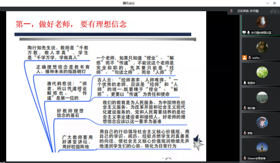 许巧情从“做好老师,要有理想信念;做好老师,要有道德情操;做好老师,要有扎实学识;做好老师,要有仁爱之心”四个方面全维度讲授了做好老师所应具备的素养和条件。她向全体党员同志分享了自己对习近平总书记在报告中提出的“教育、科技、人才是全面建设社会主义现代化国家的基础性、战略性支撑,必须坚持科技是第一生产力、人才是第一资源、创新是第一动力”的体会,认为这对广大科技工作者是极大的鼓舞,必将激发科技创新的巨大潜能! 作为高校教师,要潜心科学研究,悉心知识传授,自觉做到教书育人,通过言传身教把立德树人的根本任务落到实处,这样的老师才是好老师!