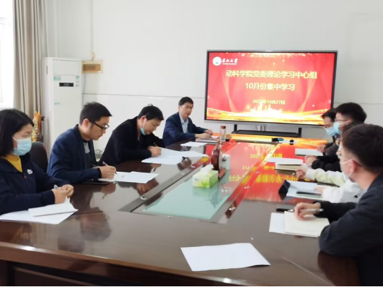 10月27日上午,学院党委理论学习中心组在西校区5教807会议室举行10月份集中学习会,学院班子成员高学军、许巧情、杨烨,全体党支部书记参加学习,会议由党委书记熊新山主持。